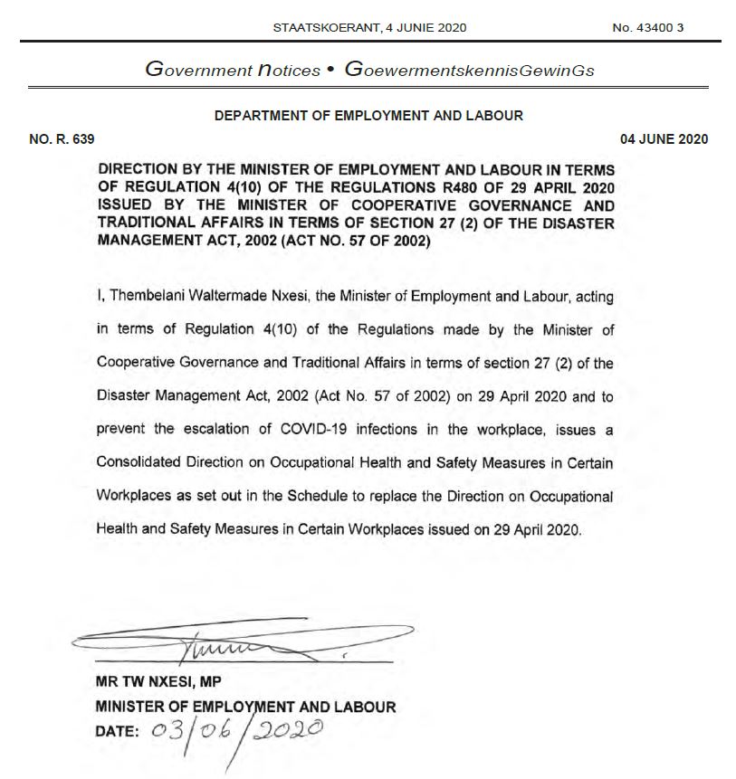 Consolidated Direction on COVID-19 OHS Measures in Workplaces