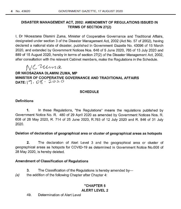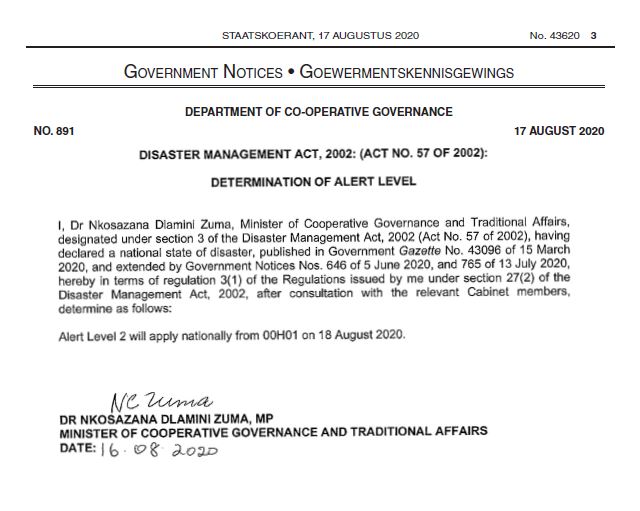 Disaster Management Act, 2002: Regulations Issued in Terms of Section 27(2) - Alert Level 2