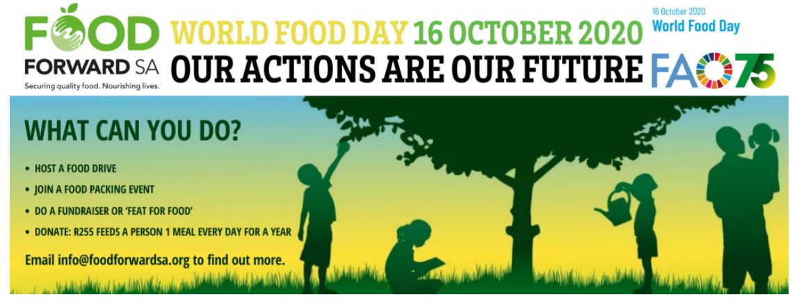 Leading up to World Food Day on 16 October 2020, now more than ever, we need to come together again to meet the increased challenges presented by COVID-19. Be part of this initiative, donate now to FoodForward SA.