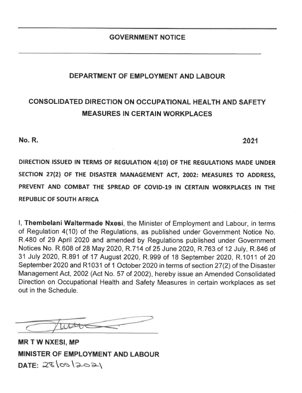 New OHS COVID-19 Direction - 28 May 2021