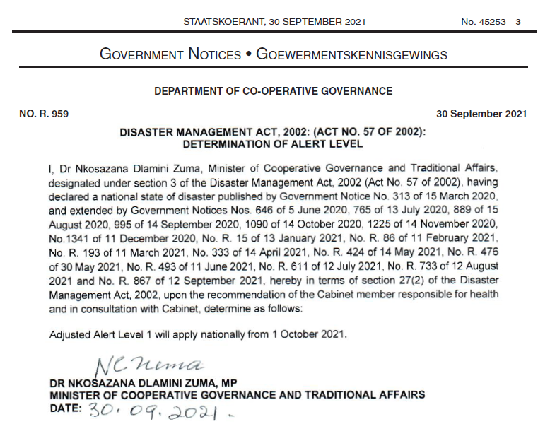 Alert Level 1: COGTA - Disaster Management Act (57/2002): Amendment of Regulations