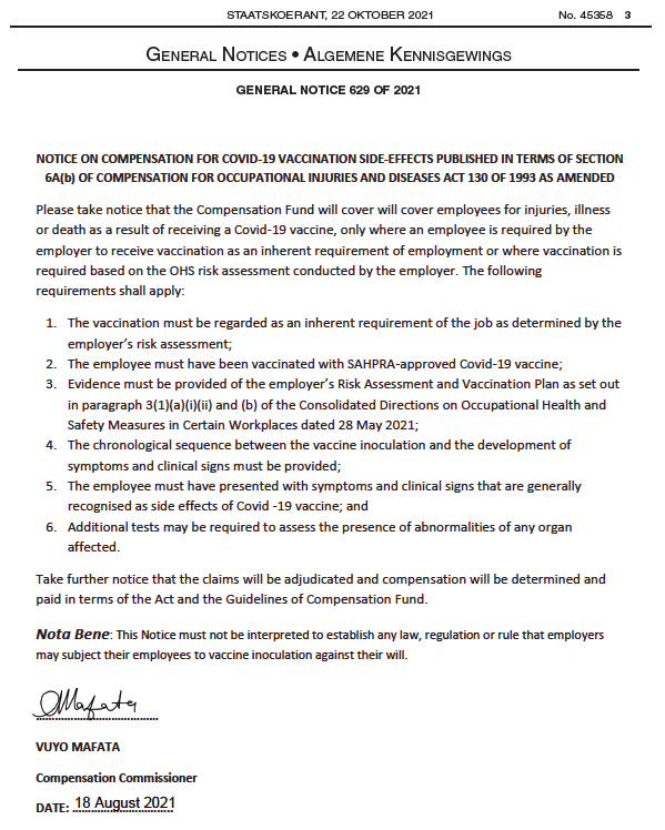 Notice on Compensation for Covid-19 Vaccination Side-Effects