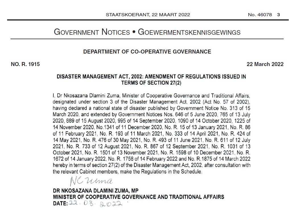 COGTA - Disaster Management Act (57/2002): Amendment of Regulations