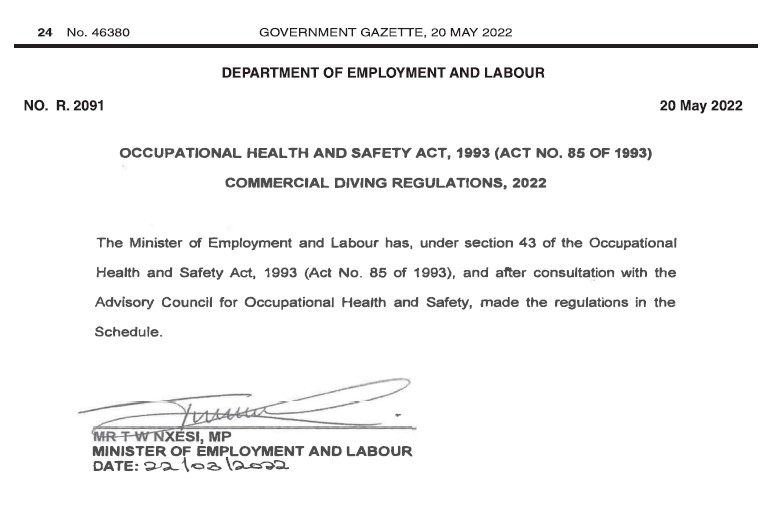 Commercial Diving Regulations 2022